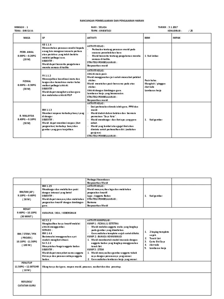 Tunjang komunikasi bahasa melayu murid prasekolah sasaran. Contoh rph pdpr format terkini rancangan pengajaran harian guru portal . Contoh jadual pdpr sekolah rendah.